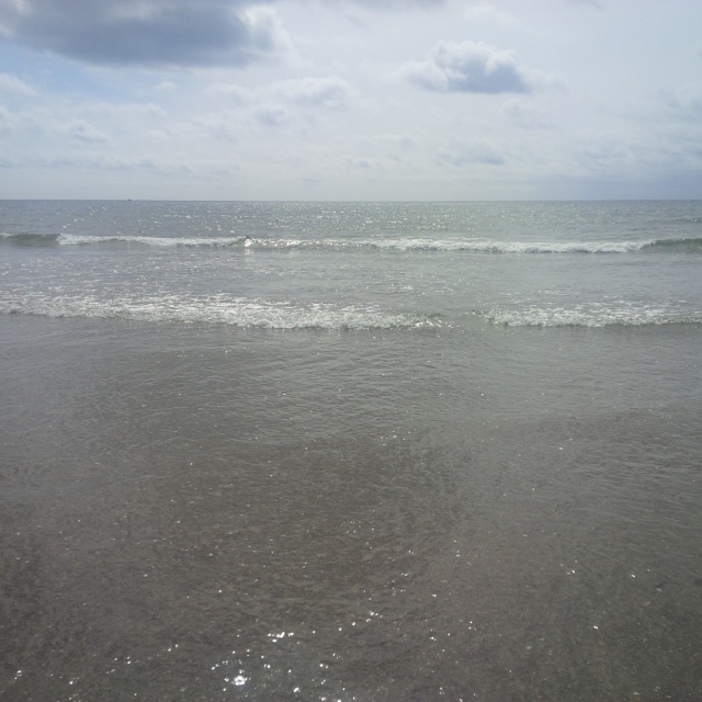 In late spring, hayfever begins its annual assault and to escape the pollen, I follow the route of the river Dissour which flows through Glenbower and eventually enters the sea at Pilmore. There is something about the convergence of sea, sand and sky that has an incredible effect on the psyche. It is difficult not to feel good at the beach – unless of course, you are a tourist down for just that one day and locked into your car to avoid being frozen to death or blown away as you watch the rain stream down! The sparkle of sunlight on the water, the smell of the sea and the seaweed, the ebb and flow of the tide, the crash of the breakers, the sense of being surrounded by something far, far bigger than yourself… It’s heaven. And no less beautiful in bad weather than in good – one of my favourite ever lines of poetry comes from Sylvia Plath’s ‘Finisterre’ and describes impeccably the noise and drama of a stormy coastline: “Souls rolled in the doom-noise of the sea”.